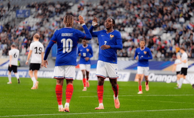 本赛季从拜仁转会至热刺的特尔,被法国U21主帅视为“天生的领袖”,与扎伊尔-埃梅里共同担任队长。在比赛中,特尔助攻西塞首开纪录,并通过积极跑动压制对手士气,同时参与第四球的进攻。而奥多贝尔则以10号战袍身份展现创造力,不仅助攻特尔得分,还通过一脚抽射梅开二度,连续两场比赛双响,体现出攻防俱佳的能力。
