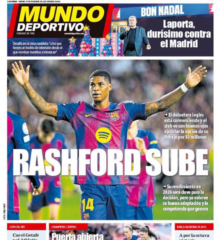 据西班牙媒体「E-Notices」报道,巴萨已向拉什福德及其经纪人哥哥提出了永久加盟的三大关键条件。首先,拉什福德必须继续改善个人作风,承担更多防守职责,全力配合弗里克的战术体系。其次,他需进一步接受降薪方案,帮助巴萨向曼联施压,希望将固定的3000万欧元买断金额及500万欧浮动条件降低至2000万至2500万欧元区间。